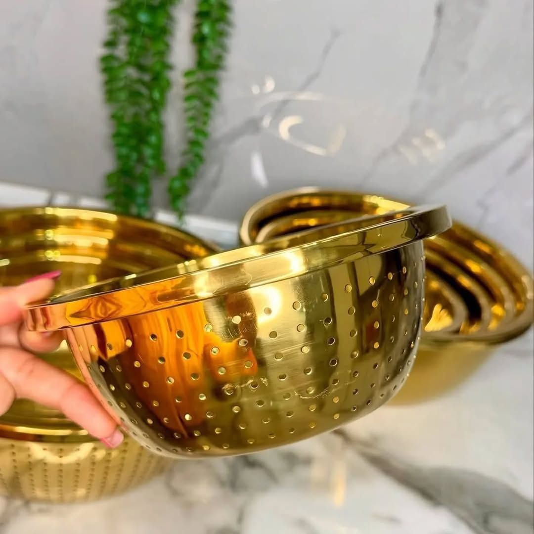 ست 12 عددی آبکش و لگن طلایی گرد لبه دار یونیک