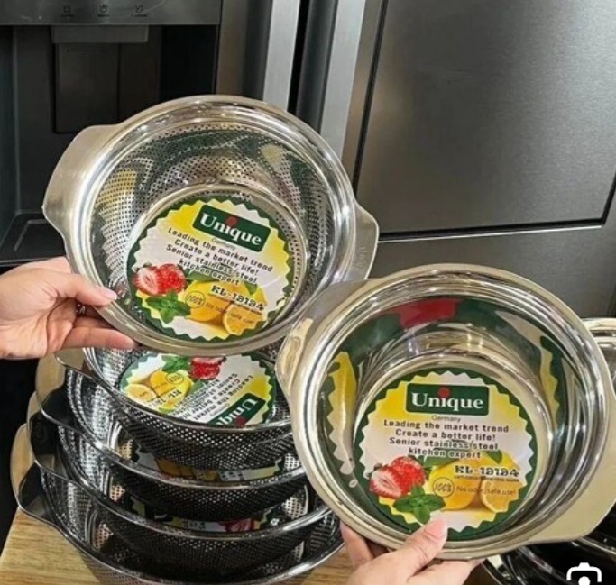 آبکش و لگن استیل 10 پارچه چهارگوش یونیک
