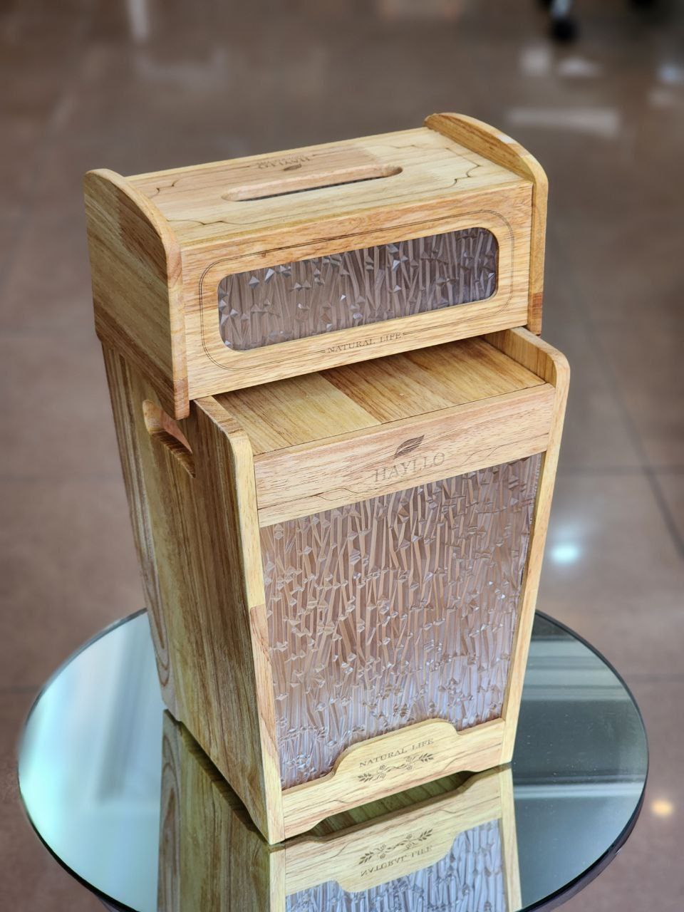 سطل آشغال و جا دستمال کاغذی مدل شیشه ای