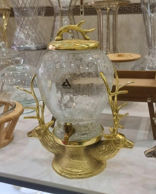 کلمن شیشه ای آبگز طرح گوزن آلمینیومی