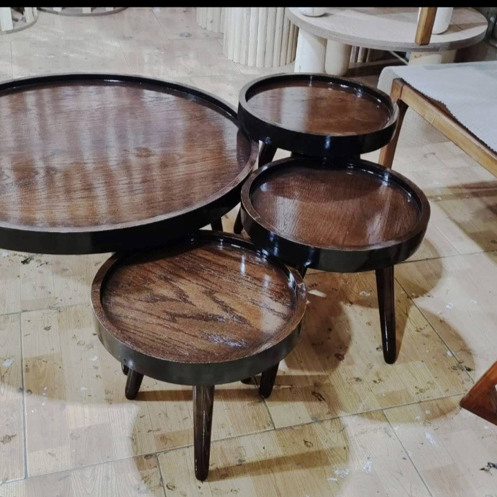 میز جلو مبلی گرد لبه دار به همراه 3 عدد عسلی