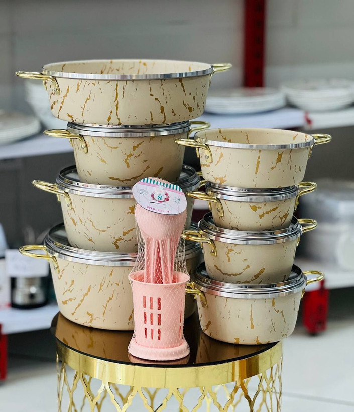 شامل ۶ عدد قابلمه در سایز های ۱۴ و ۱۶ و ۱۸ و ۲۰ و ۲۴ و ۲۸