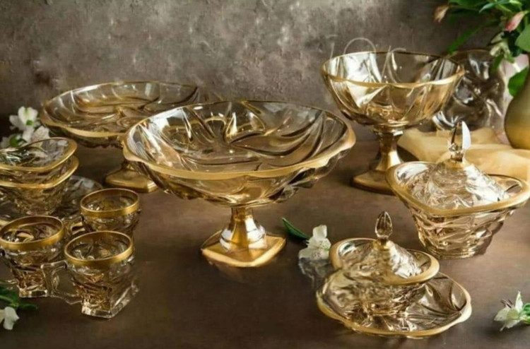 سرویس کریستال بوگاتی شامپاینی لب طلایی