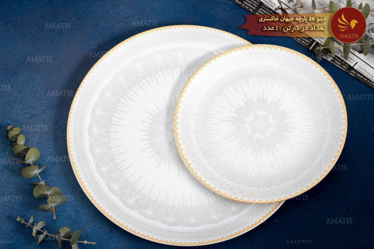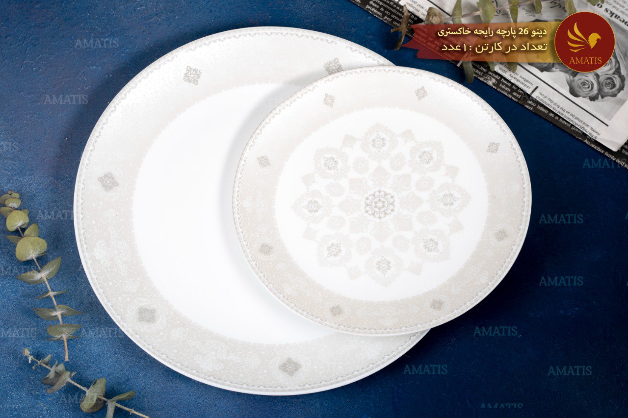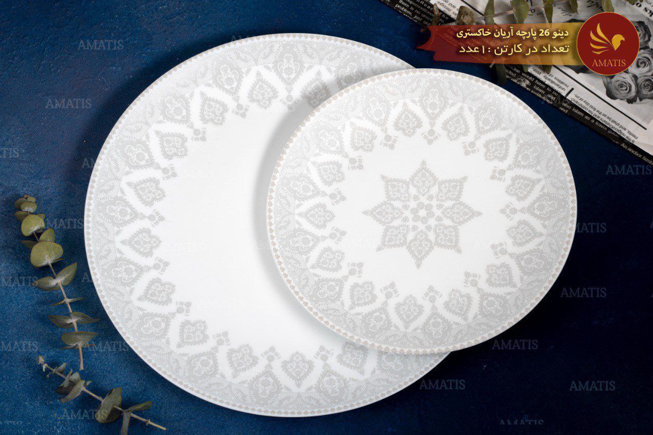🌟 سرویس چینی ۲۶ پارچه طرح دینو – رنگ آدان خاکستری 🌟