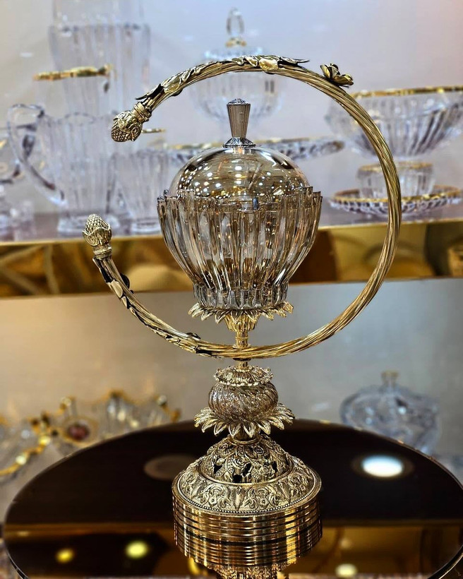 سرویس کریستال برلین با پایه آمیتیس، ترکیبی بینظیر از ظرافت و اصالت است که با طراحی لوکس و جزئیات چشمگیر، جلوهای خاص به میز پذیرایی شما میبخشد. این سرویس از کریستال شفاف و باکیفیت ساخته شده و پایههای آن با آبکاری طلا و طرحهای هنرمندانه، زیبایی و ماندگاری دوچندان یافته است.