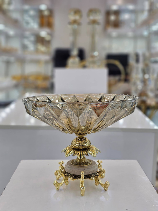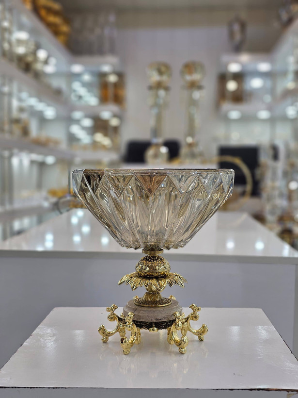 رنگ شامپاینی دلانگیز، پایههای طلایی هنرمندانه و کیفیت ساخت بالا، این اثر را به گزینهای ایدهآل برای پذیراییهای مجلل و هدیهای ماندگار تبدیل کرده است.