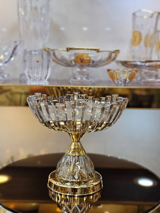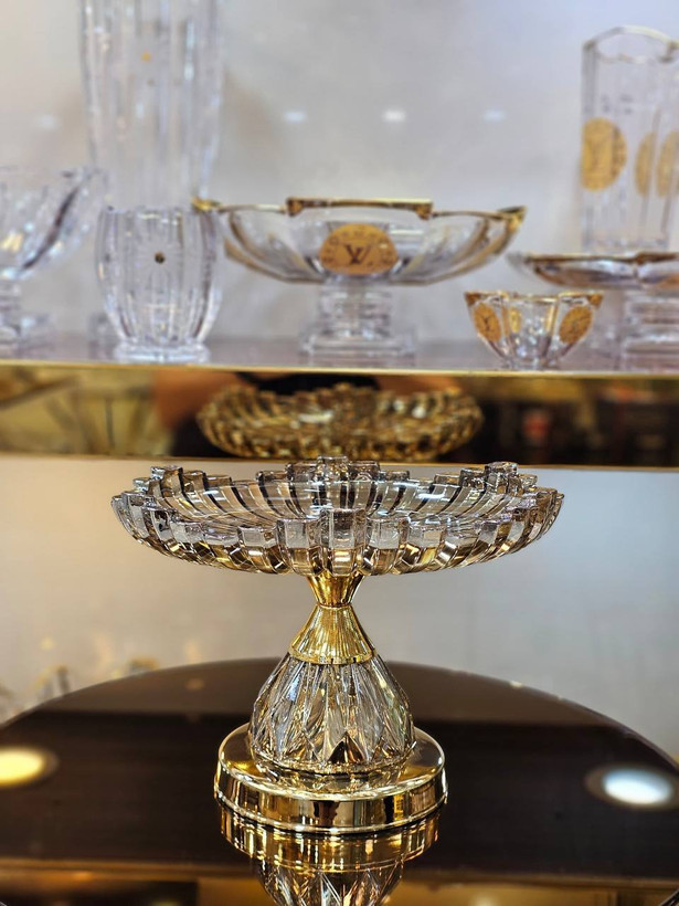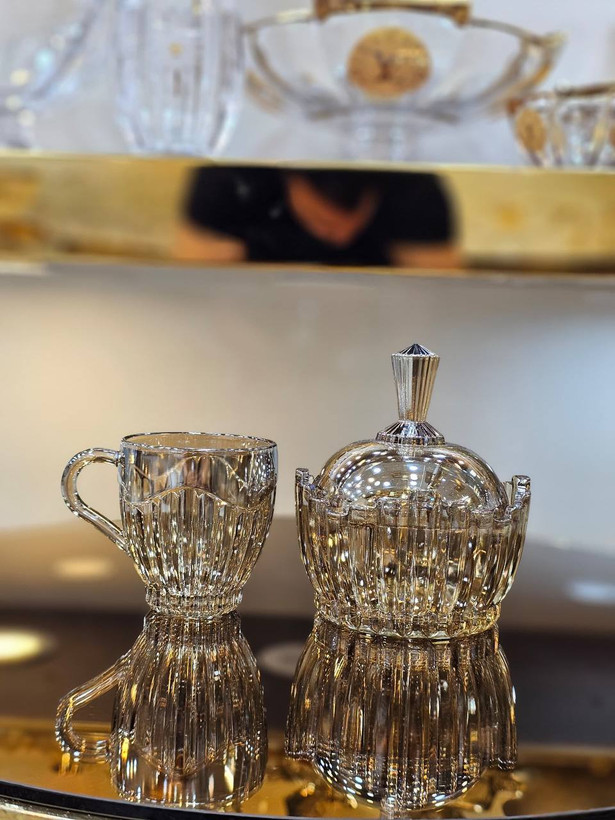 سرویس پذیرایی فوقالعاده زیبا و شیک، ساخته شده از کریستال با کیفیت بالا همراه با طلاکاری ظریف.