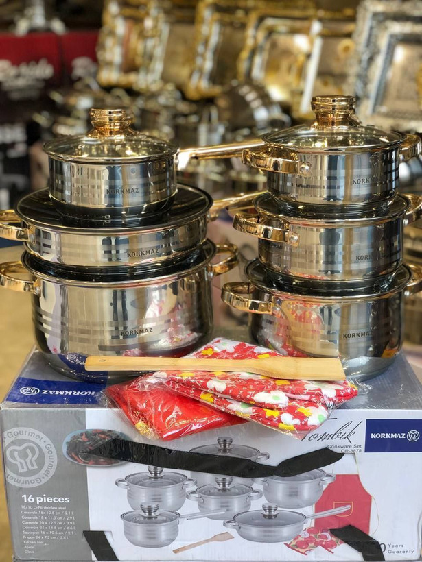 با سرویس قابلمه ۱۶ پارچه کرکماز (Korkmaz) آشپزی به یک لذت واقعی تبدیل میشود. طراحی مدرن، کیفیت ممتاز و دوام بالا این محصول را به انتخابی ایدهآل برای هر آشپزخانه تبدیل کرده است.