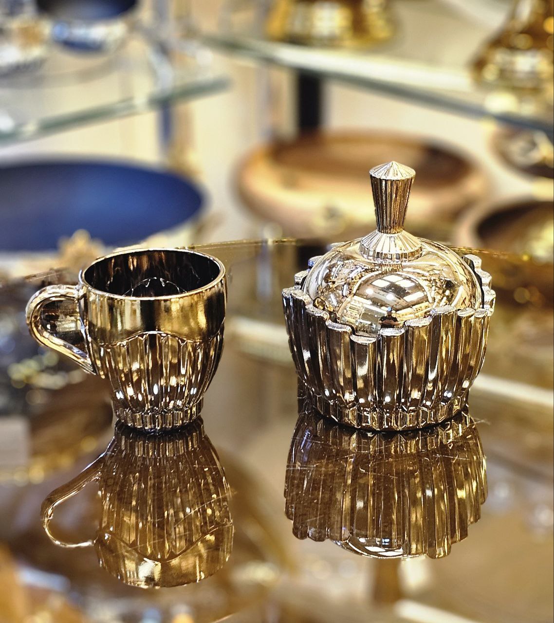 این ست، ترکیبی از ظرافت کریستال و شکوه طلایی است؛ انتخابی خاص برای کسانی که به زیبایی و لوکس بودن اهمیت میدهند.