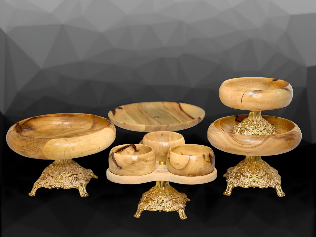 سرویس پذیرایی ۵ پارچه چوب گردو قلمکاری کد A202