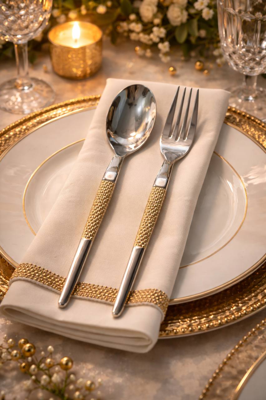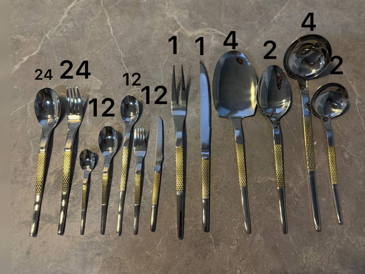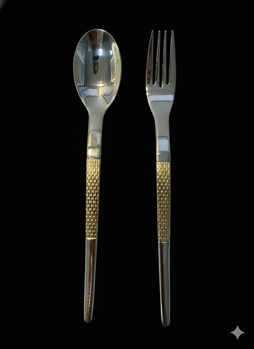اگر بهدنبال ترکیبی از زیبایی، کیفیت و جلوهای مجلل برای میز غذاخوری خود هستید، این سرویس قاشق و چنگال لوکس با طراحی مدرن و دستههای طلایی، انتخابی بینقص برای شماست.