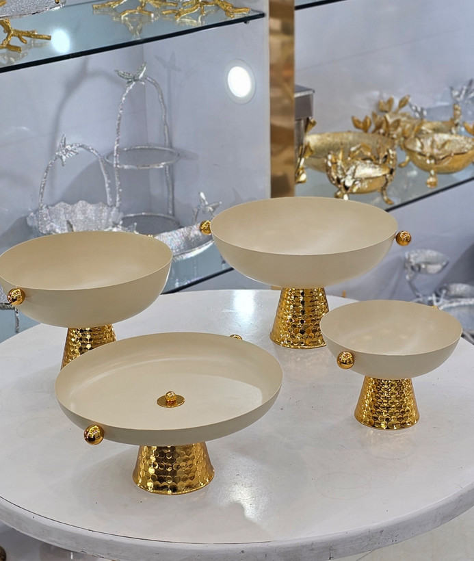 🔸 کاسههای مات با پایههای طلایی طرح چکشی