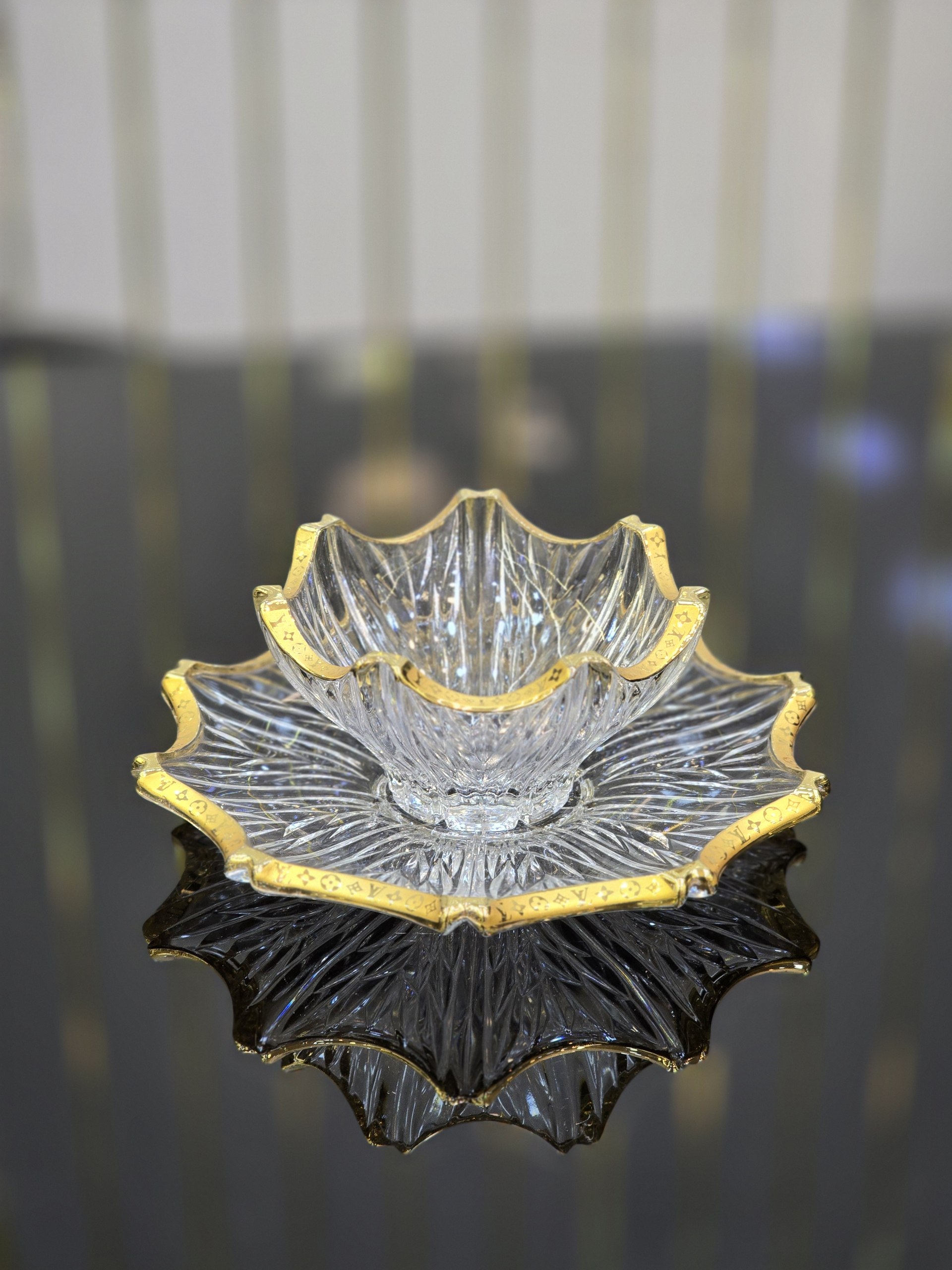 سرویس کریستال الیزه لوئی ویتون با طراحی چشمنواز و لبههای طلاکوب، جلوهای فوقالعاده شیک و مجلل به میز پذیرایی شما میبخشد.