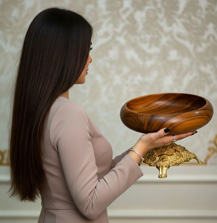 ست میوهخوری لوکس چوب گردو با پایه آلومینیوم PVD قلمکاریشده