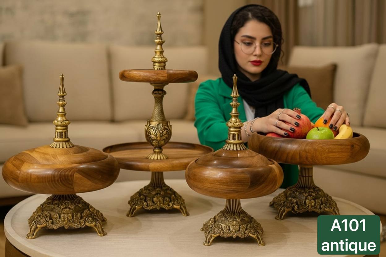 ست میوهخوری لوکس چوب گردو با پایه آلومینیوم PVD قلمکاریشده